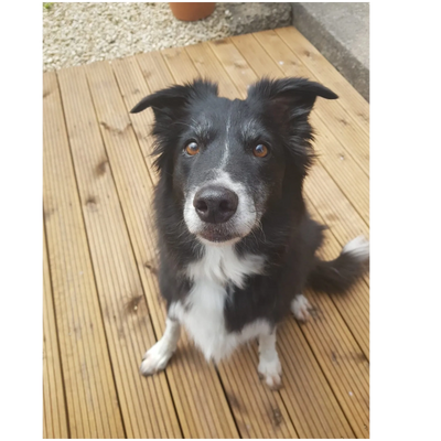 Millie was a stray found near a farm in Ireland, was rescued by a UK charity, and we adopted her in 2010. She was about 18 months old when she came to live in her forever home with us
